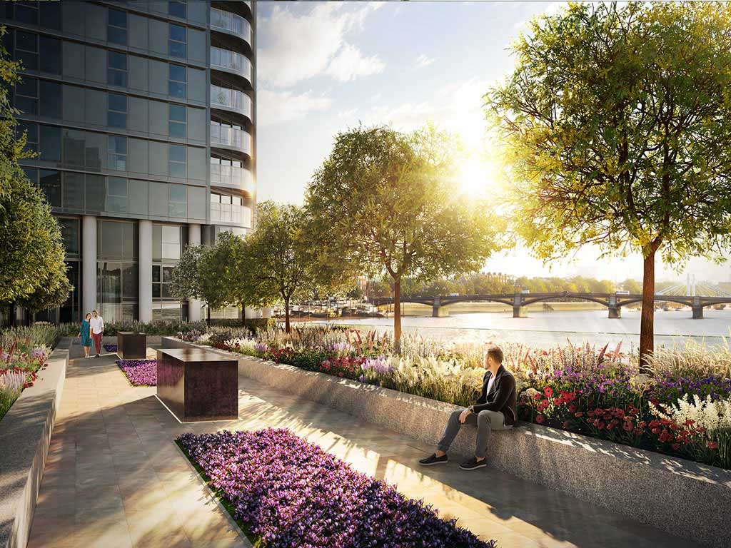项目位于北岸,可以欣赏到泰晤士河以及威斯敏斯特和城市下游的壮观景色。该楼盘作为伦敦泰晤士河北岸100多年来最大的高档住宅项目,是伦敦高档富豪居住区切尔西最大、最时尚的河畔住宅,将成为伦敦河畔豪宅的里程碑式标志。